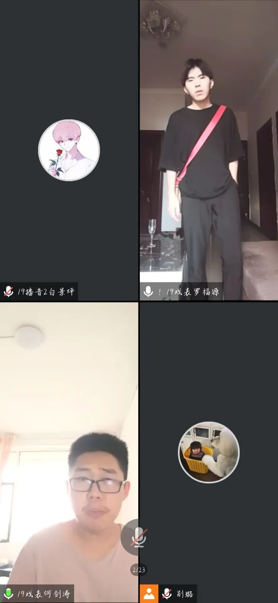 6月19号晚6点30,表演艺术学院举办戏剧影视表演专业线上基本功大赛决赛。担任本次大赛的评委老师有:播音与主持教研室主任文倩老师,播音与主持教研室教师王洋、黄晶、别璐老师。18播音班与19播音班的同学们也参与了此次比赛的观摩。