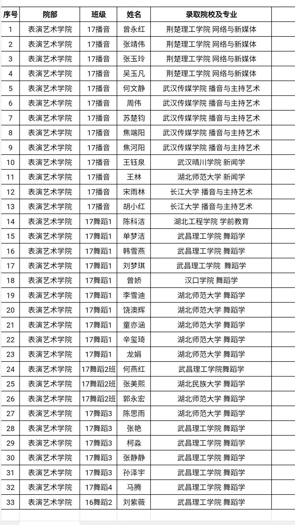 今年7月,表演艺术学院共41名学生参加湖北省2020年普通专升本升学考试,最终确定录取33人,考取比例高达80%。