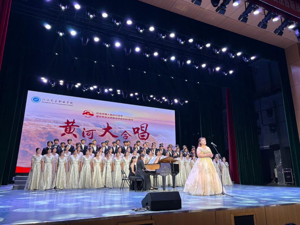江职新闻网讯(通讯员 林晓波 党宣李)激昂旋律回望峥嵘岁月,红色乐章传承民族精神。9月17日晚,学校风华剧场内座无虚席,“铭记历史 唱响和平”纪念中国人民抗日战争暨世界反法西斯战争胜利80周年《黄河大合唱》专场音乐会开演,师生齐聚一堂,在经典旋律中重温历史记忆、感悟爱国情怀。