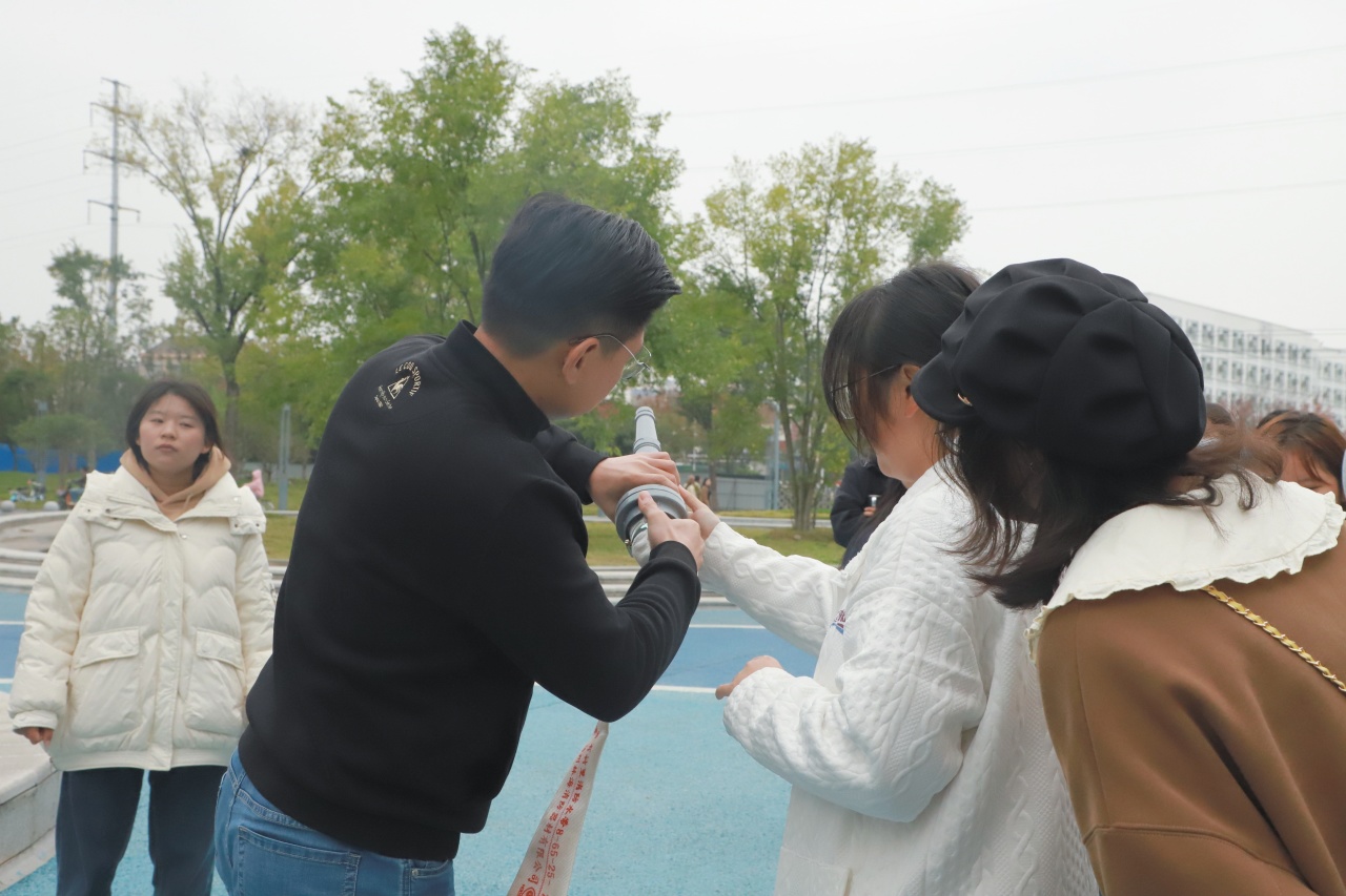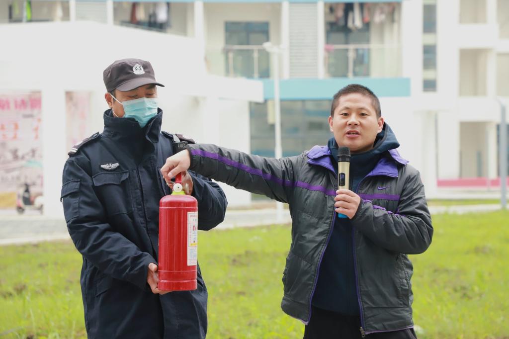 在现场操作演示过程中,保卫处处长葛新老师就如何正确使用干粉灭火器,向在场师生进行了详细讲解和规范操作,手把手教同学们如何使用干粉灭火器对准火焰的根部进行灭火。师生们轮番上阵,亲身体验感受,现场气氛热烈。