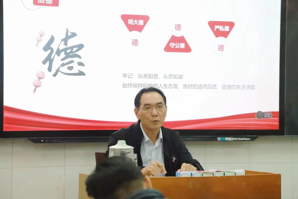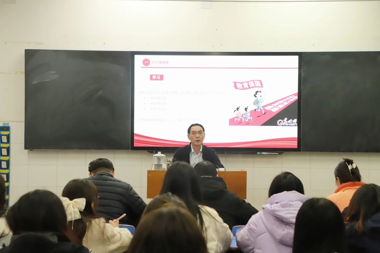 李书记表明青年是关乎时代样貌的关键性力量,重视青年工作是我们党的宝贵经验和优良传统。李书记从“八个关键词看总书记对新时代青年的教诲与期望”和“放飞梦想、不负韶华,谱写新时代的青春之歌”两个方面展开讲解,用通俗易懂的语言和生动形象的例子向在座的同学解读了新时代中国青年的历史使命和前进方向。