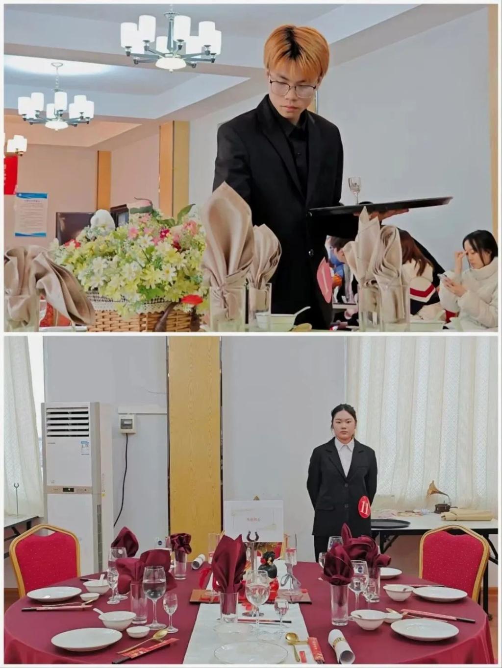 为检验我院学子的酒店服务英语的掌握能力和酒店技能的专业操作能力,管理学院于2023年11月30日下午2:30—6:00在beat365实训楼614和608分别举办了第一届中餐宴会服务技能竞赛和第一届酒店服务英语竞赛。