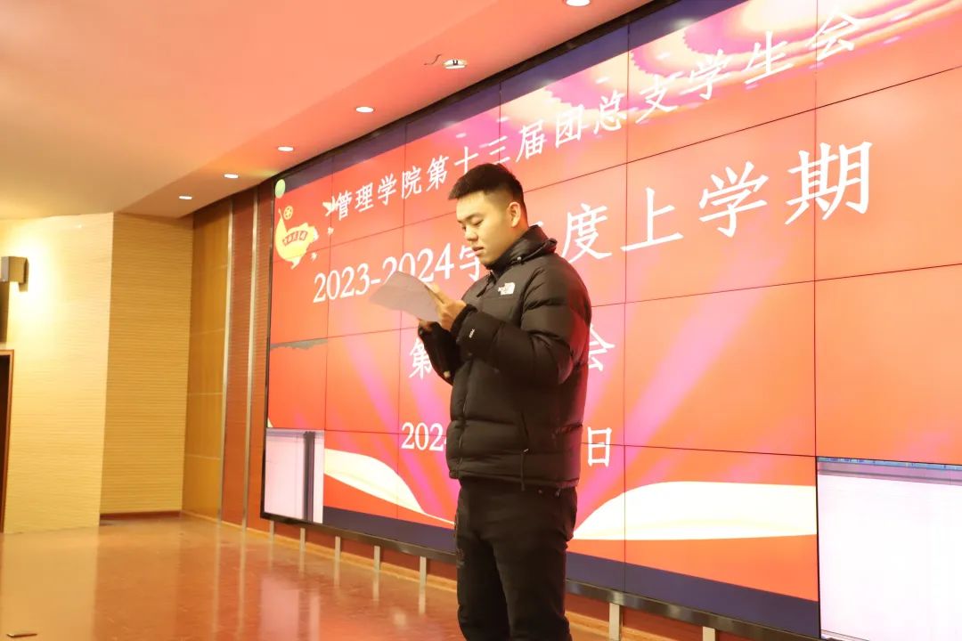 为加强管理学院学生会各部门之间的相互交流,引导成员们明确工作重点和方向,提高管理学院学生会总体工作能力和服务水平。我院于1月9日下午在2号报告厅召开了管理学院第十三届团总支学生会2023—2024学年度上学期第一次例会。会议开始,由主持人带领大家一起学习《学生会、研究生会干部自律公约》。集体学习旨在强调学生会成员应恪守学生本分、牢记学生会宗旨、永葆理想主义情怀、发挥好先锋模范作用、发扬求真务实的工作作风、积极遵守公约、不断充实自我、增强自身本领,得以更好地服务同学们。