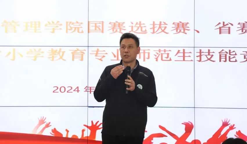 小学教育活动设计与实施现场裁判刘海燕老师进行发言。首先,她依据本次国赛裁判长原话,介绍了国赛选拔赛评判的三个出发点,强调在平时训练中需引导学生怀有家国情怀,充满正能量,要做到心中有爱、眼中有情。其次,刘老师对标评分标准,总结出要在模拟授课中突出整体框架设计,让语言充满感染力,重视交流感。最后,她肯定了本次参赛选手的扎实基本功,鼓励我们要提升自身的综合实力。