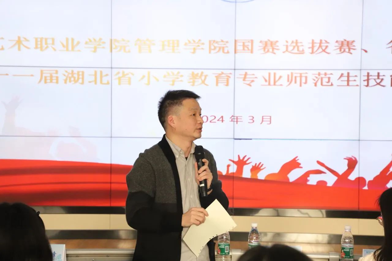 罗俊院长作国赛选拔赛、省赛点评及总结,并就第十一届湖北省小学教育专业学生技能竞赛动员发言