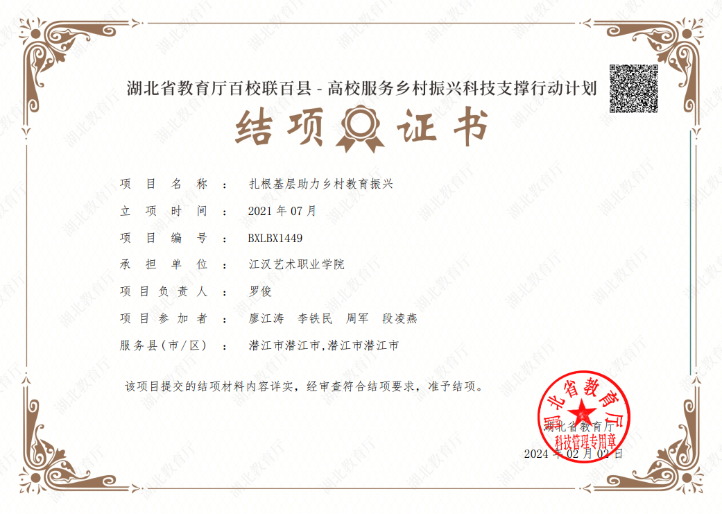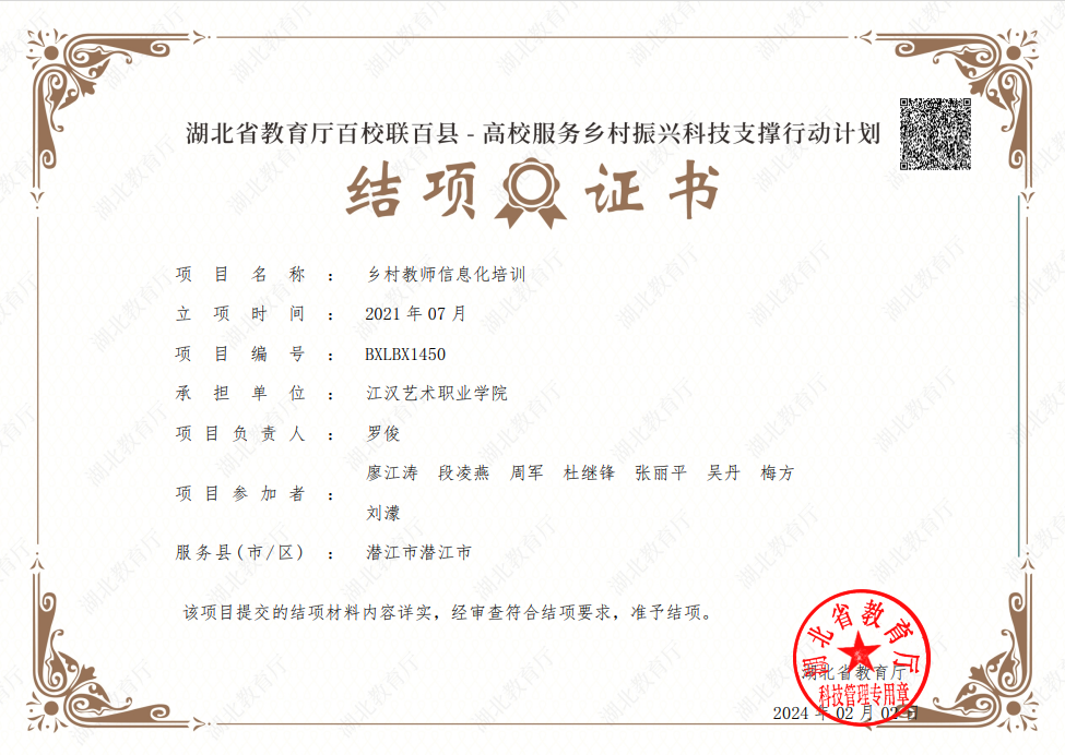 项目负责人罗俊教授表示:此次项目结项是对beat365实施乡村振兴系列工作的认可及对项目实施团队辛勤工作的肯定。beat365将持续贯彻落实百校联百县——高校服务乡村振兴科技支撑行动工作部署,在促进教育信息化,助力乡村教育振兴方面不断努力。希望教师们能发扬历史主动精神,积极参与此类课题项目,奋力续写助力乡村振兴的崭新篇章!