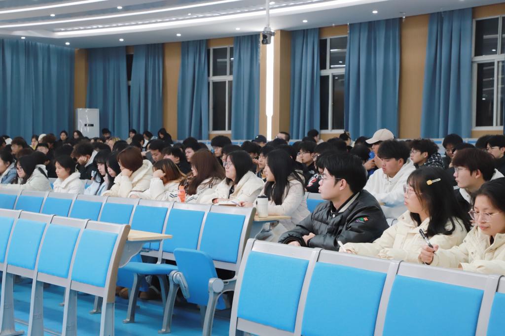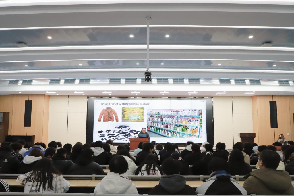 王岩博士从现代化工概况展开,深入剖析了湖北省化工发展现状,特别聚焦潜江市绿色化工发展特征进行讲解,并详细介绍了潜江绿色化工产业技术研究院的相关情况。深入浅出的讲解让在场师生对化工领域的绿色发展有了更为系统且深入的理解,拓宽了大家在化工专业领域的视野。
