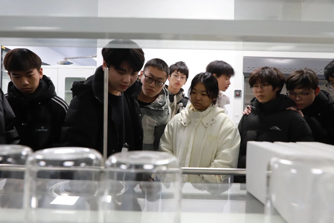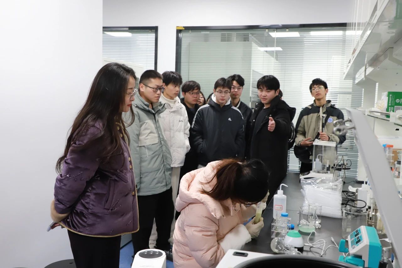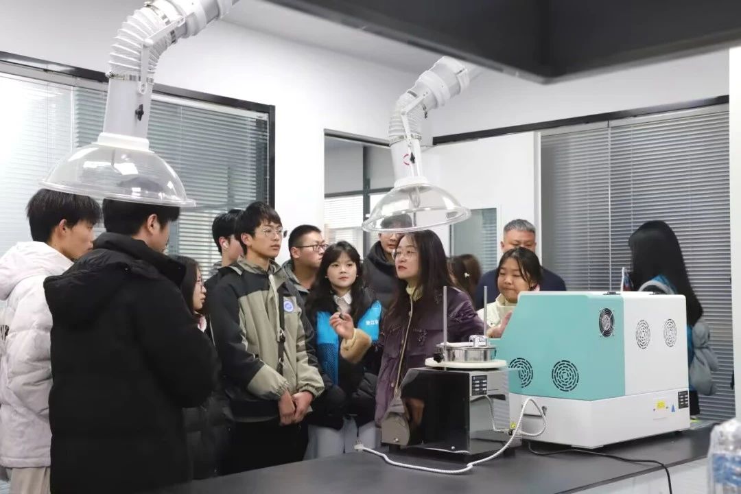 随后,前往潜江绿色化工产业技术研究院进行参观学习。在研究院的实验室里,大家亲眼目睹了许多专业的化学设备,并听取了工作人员对绿色化工新技术及其产业应用的详细介绍。通过实地观摩与聆听讲解,同学们对绿色化工领域的前沿科技有了更深入的了解。