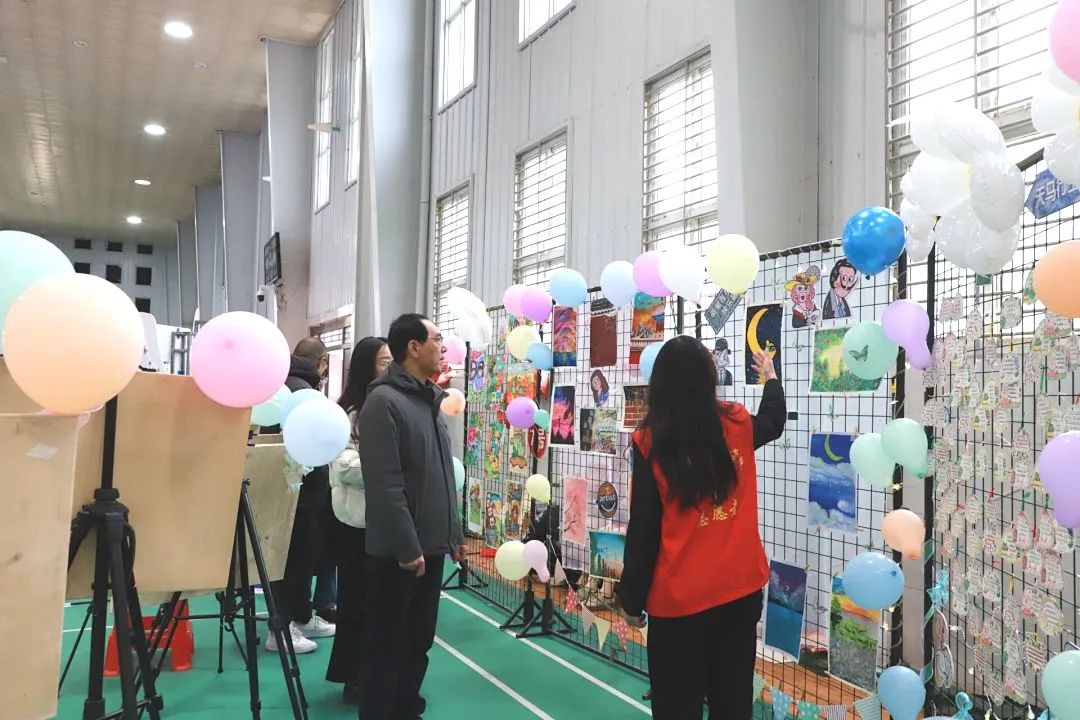 同学们在展板间穿梭往来,他们被这些充满创意和活力的画作所吸引,纷纷举起相机打卡留念,欢声笑语不断,为双选会的热闹氛围注入了更多的活力与激情。