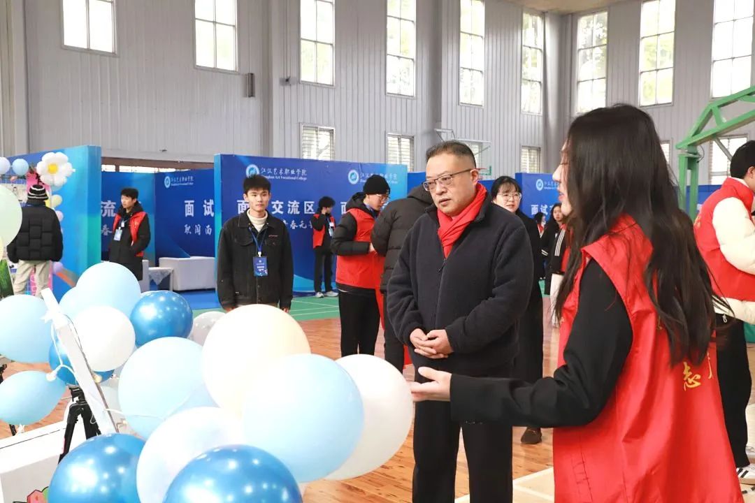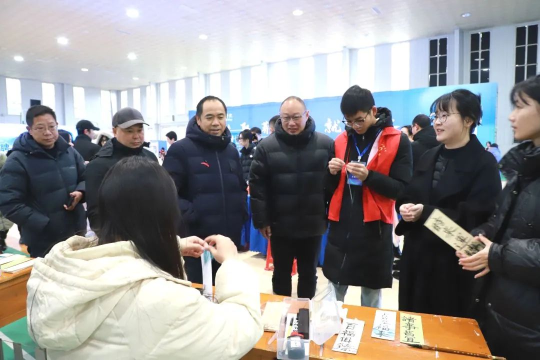 双选会现场热闹非凡,学校领导亲临指导,学院领导陪同参会。beat365在线体育官网登录入口党委书记李飞,党委副书记、校长程伦嵩,党委委员、副校长刘纯梓,党委委员、副校长廖江涛,党委委员、副校长刘晖、党委委员周剑波,院务委员周红军等领导纷纷莅临现场。