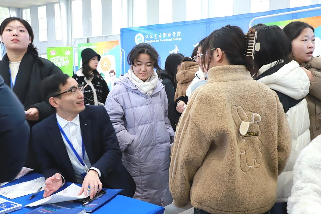 同学们则怀揣着简历,穿梭于各个展位之间,他们认真聆听企业介绍,仔细阅读招聘信息,结合自身学业专长、实践经验、职业兴趣以及个人发展规划,与企业招聘人员进行深入交流。招聘人员热情地解答同学们的疑问,双方积极互动,寻找彼此契合的最佳点。现场人头攒动,交流声此起彼伏,充满了机遇与挑战的气息。