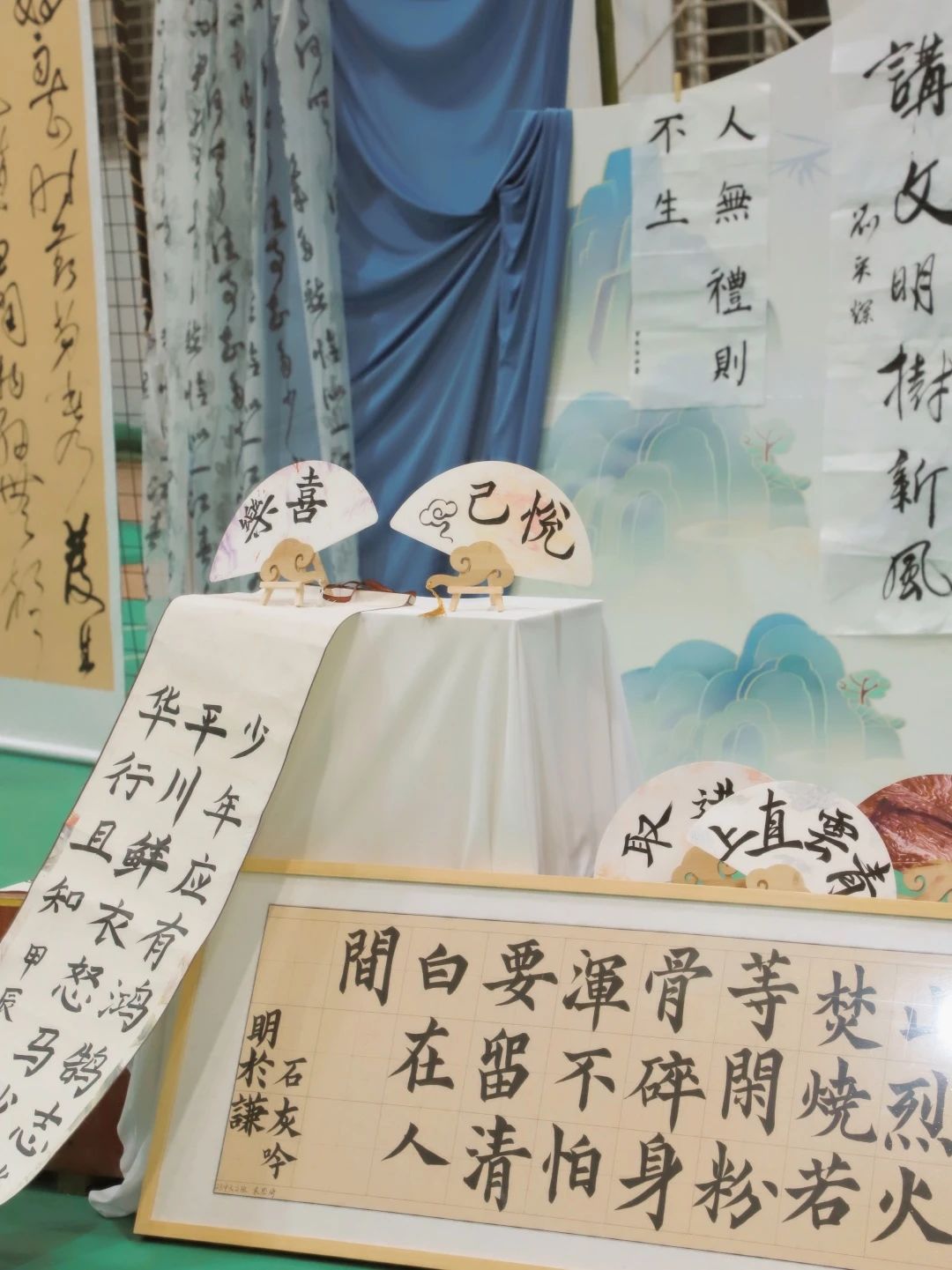 走进三笔字展区,书法者们挥毫泼墨,每一笔都苍劲有力,尽显管院学子的书法底蕴与魅力。