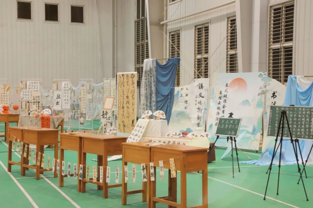 墨香吸引了众多领导和同学驻足观赏。大家都面带微笑,眼中满是对传统文化在此传承的欣慰与赞赏,他们在一幅幅作品前驻足,品味着书法的艺术之美,感受着传统文化的深厚底蕴。