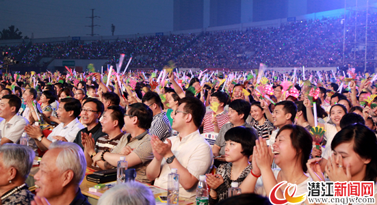 开幕式后,由央视名嘴朱迅、张泽群联袂主持,以“美丽中国 幸福潜江”为主题的文化惠民晚会为观众带来一场视听的盛宴,点燃整个夏夜。