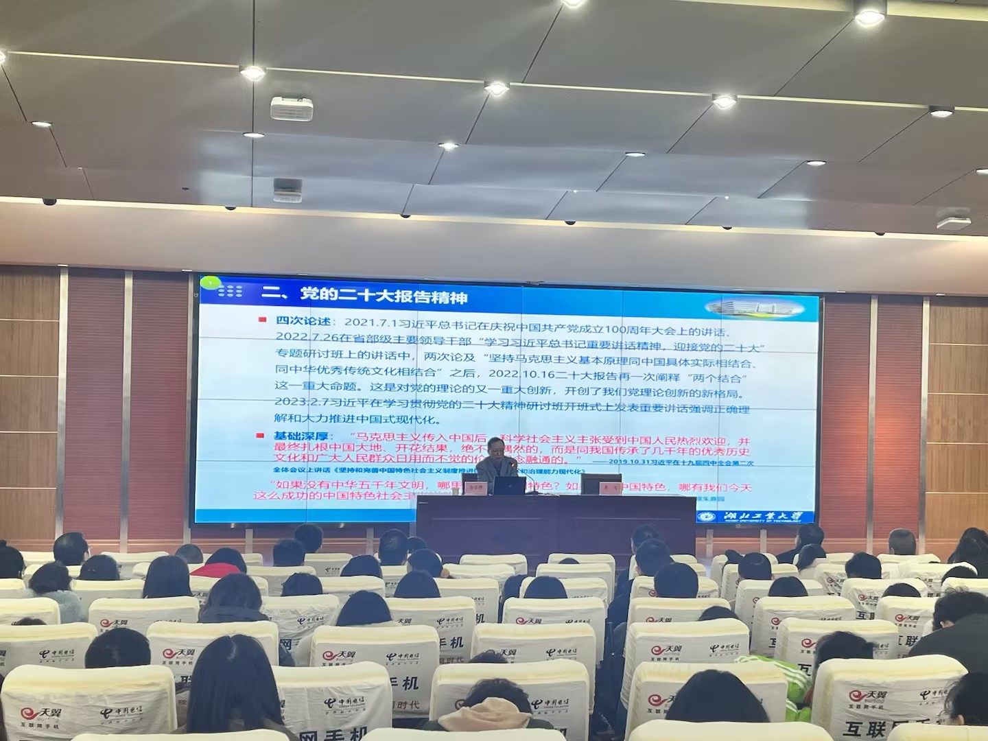 23日下午,省委宣讲团成员、湖北工业大学马克思主义学院党委书记李学锋,在beat365作了题为《以中国式现代化全面推进中华民族伟大复兴》的专题宣讲,全体校领导、教职工参加。
