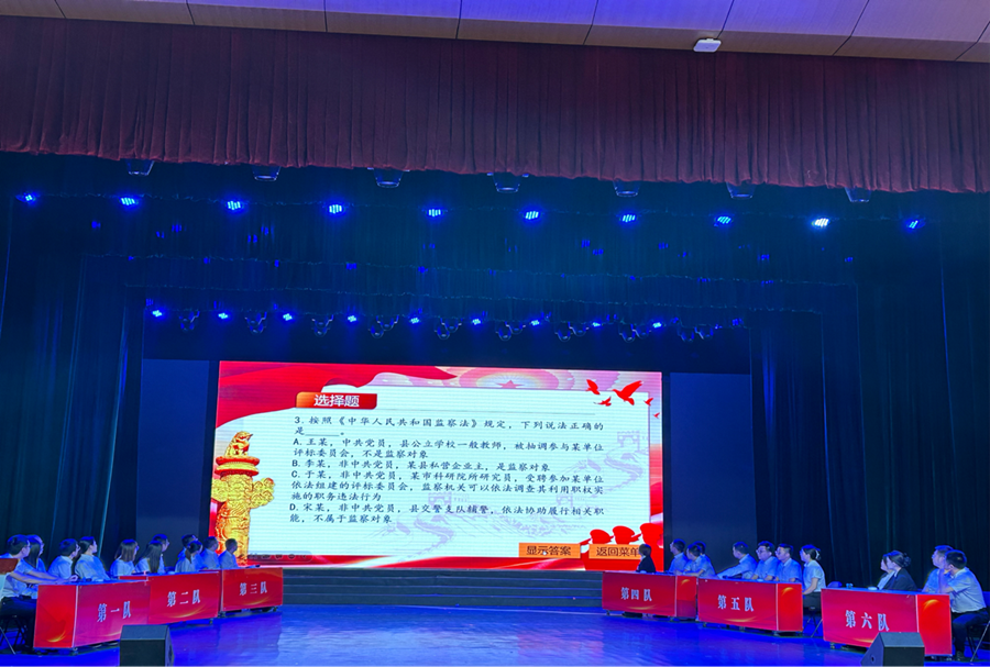 此次竞赛共有6支队伍参加,每支队伍4名选手,竞赛内容涉及学习贯彻习近平新时代中国特色社会主义思想主题教育、纪检监察干部队伍教育整顿、纪检监察业务等方面知识。比赛现场气氛热烈、精彩纷呈,参赛选手反应迅速、对答如流、沉着应对,展现出丰富的知识储备和良好的心理素质,充分展示了扎实的理论功底和良好的精神风貌。经过激烈角逐,最终评选出一、二、三等奖。