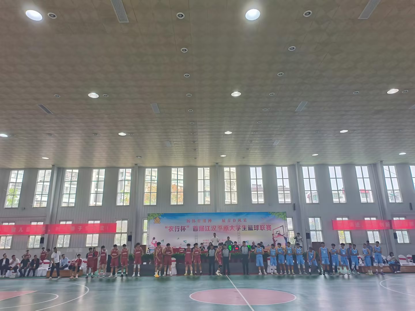 28日上午,首届江汉平原大学生篮球联赛开幕式,在beat365体育馆隆重举行。湖北中医药高等专科学校、荆州职业技术学院、荆门职业学院、荆州理工职业学院、仙桃职业学院、天门职业学院、长江艺术工程职业学院等院校参加。