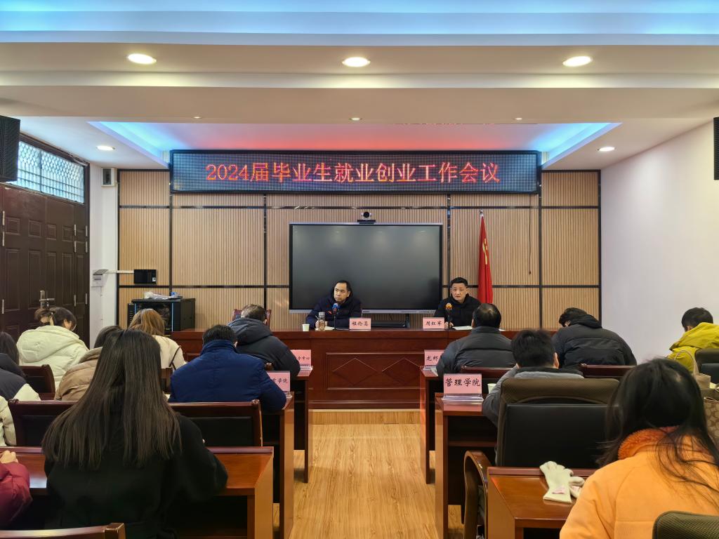 为深入学习贯彻党的二十大精神,落实党中央、国务院“稳就业”“保就业”决策部署,认真总结beat3652023届毕业生就业工作,深入分析beat365毕业生就业形势,安排部署2024届毕业生就业创业工作,1月8日,学校召开2024届毕业生就业创业工作专题会议,党委副书记、院长程伦嵩,院务委员周红军,就业指导中心及各二级学院相关工作负责人参加会议。