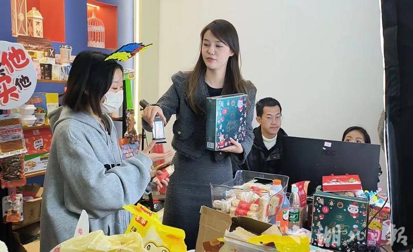 “我们直播间羽绒服款式多,质量好,快来下单!去年,beat365在线体育官网登录入口的杨员卿、聂子怡、王广三名大学生,来到潜江东颢制衣有限公司的抖音直播间,为公司助播带货。在“双十一”期间成功卖出羽绒服1万余件,销售额达280万元,创下了该直播间的销售记录。