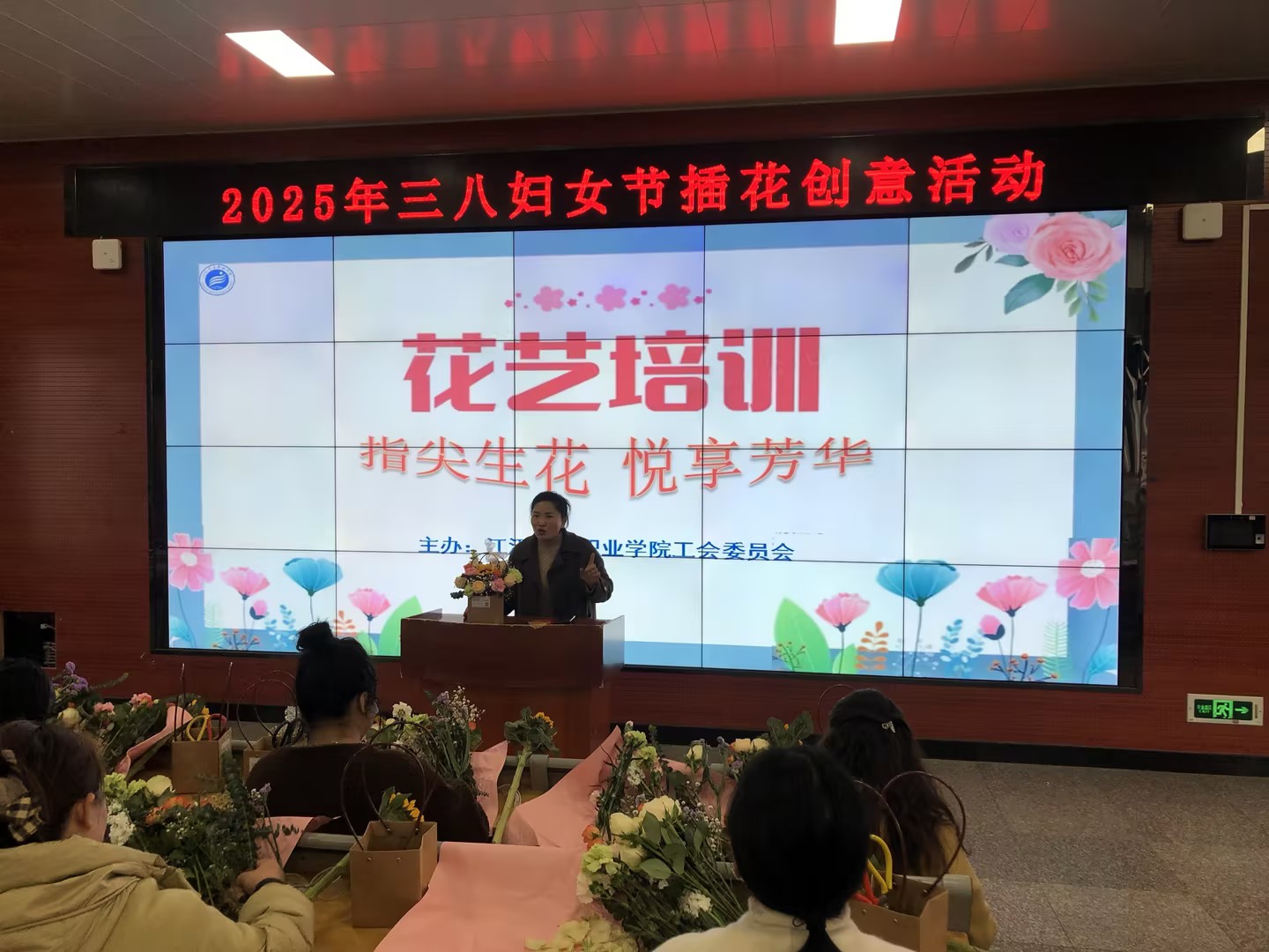 活动现场,摆满了各类鲜花。花艺老师详细讲解插花技巧,从花材选择、色彩搭配到造型设计,一步步耐心指导。教师们认真聆听,不时提出问题。