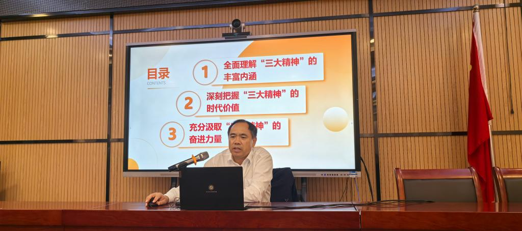 江职新闻网讯(通讯员 吴冰莹)9月25日下午,党委副书记、校长程伦嵩到音乐学院开展弘扬“三大精神”宣讲,为师生讲授了一堂有深度、有温度、有力量的思政课。音乐学院教职工、入党积极分子参加学习。