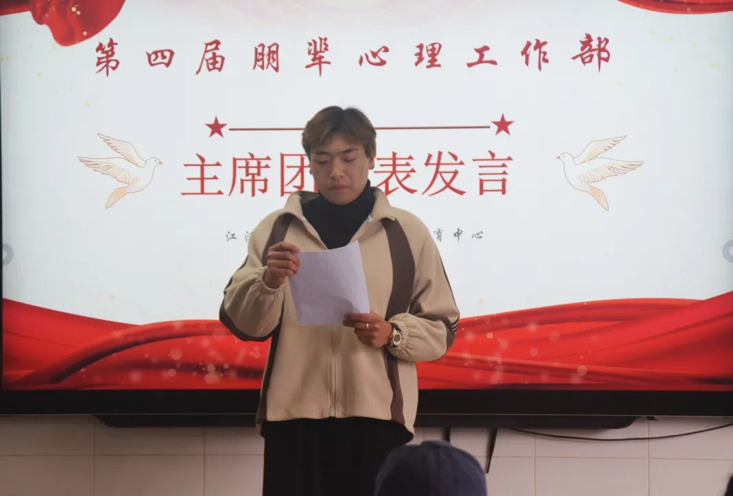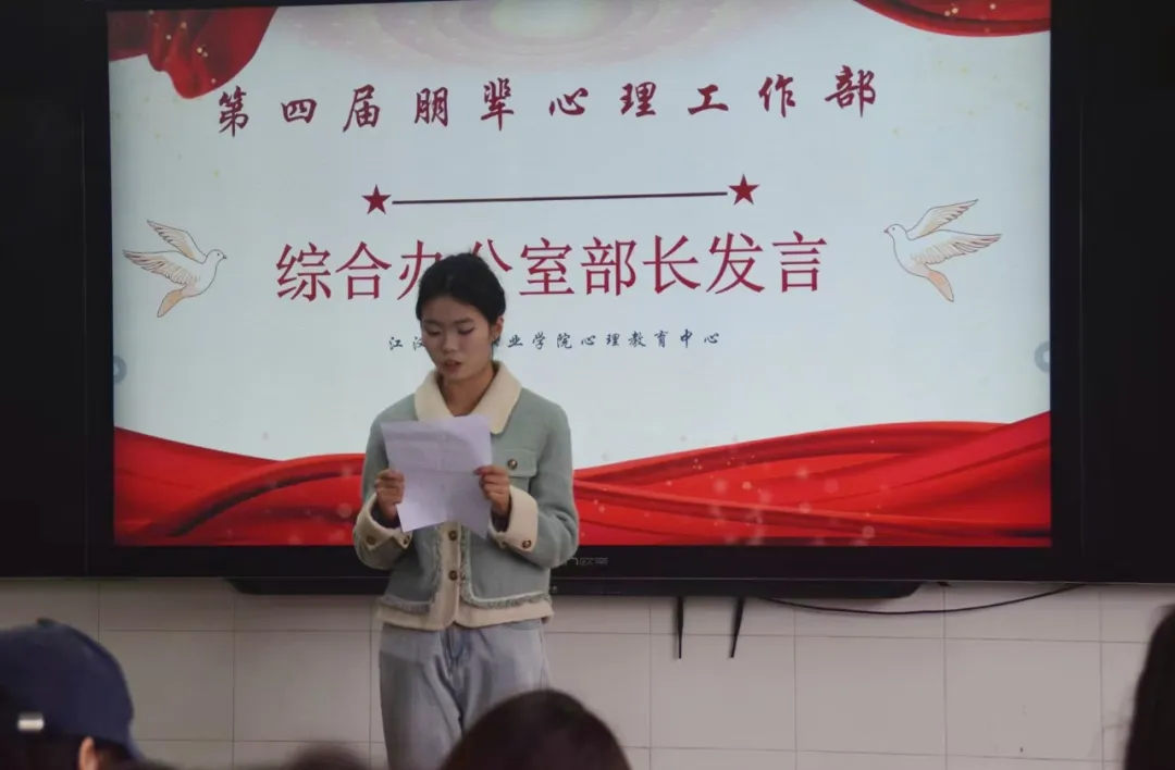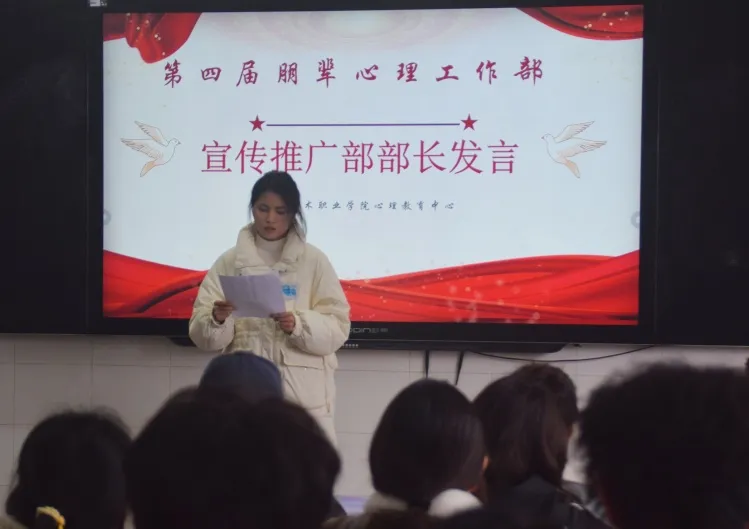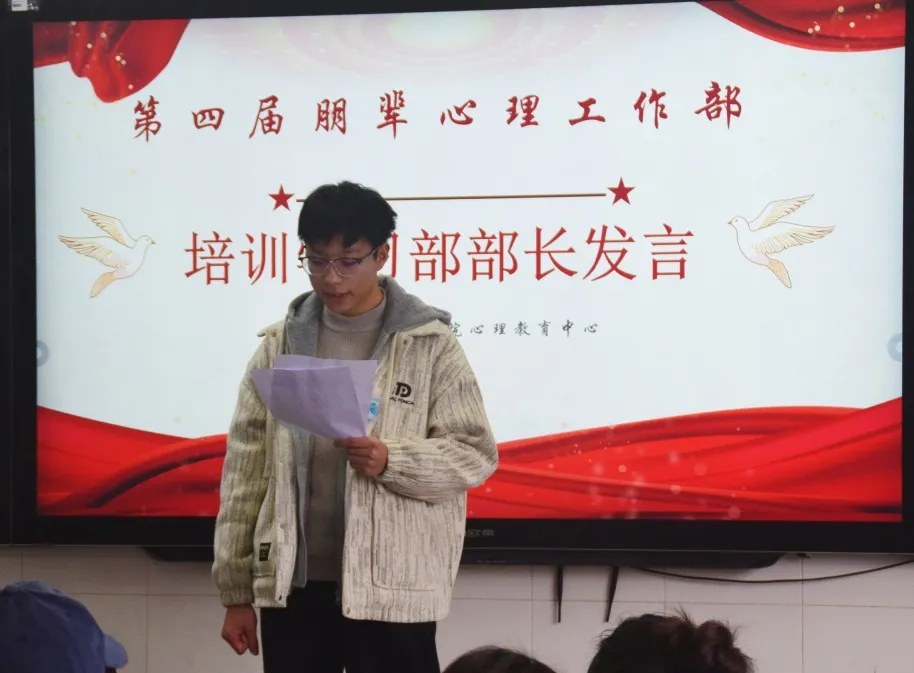 培训部部长发言总结了上一学期共同举办多场活动的经验,表明将继续严格把控每个环节,提升活动品质的态度,为本学期带来更好的带来更好的校园活动做出努力。