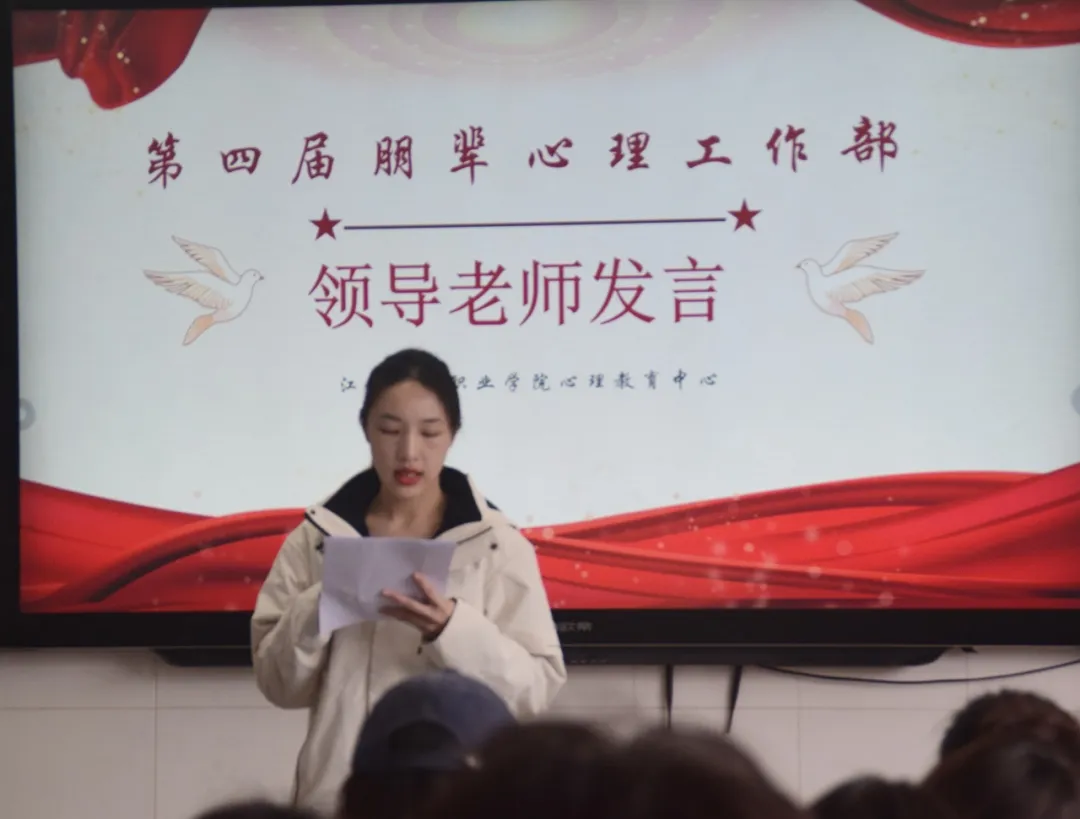 最后一项由领导老师李国珍老师发言,李国珍老师对上学期大家的工作给予了高度的赞扬,也指出了其中的不足之处,表达了对未来的工作的期许,希望大家继续保持积极的工作态度为朋辈心理工作部添砖加瓦。