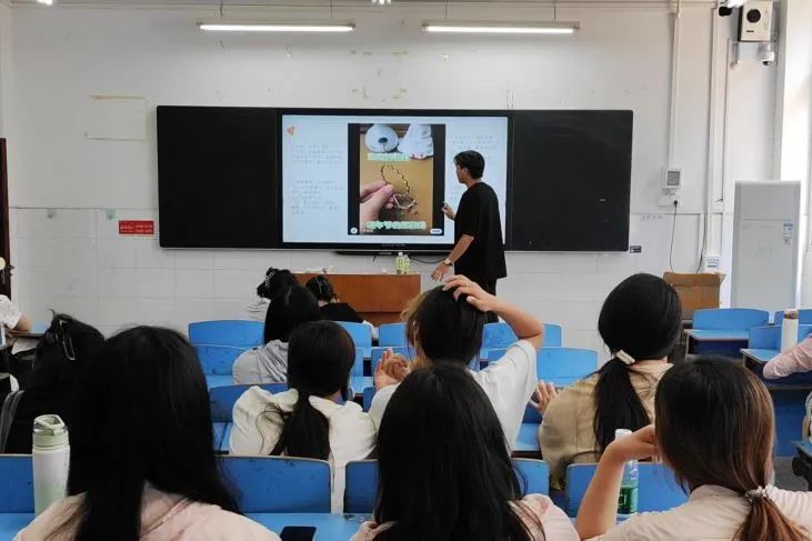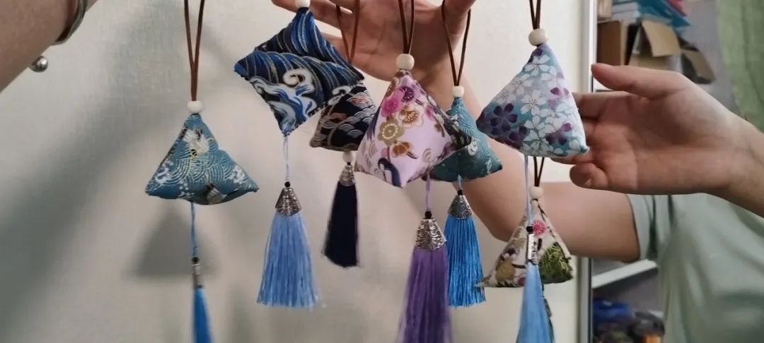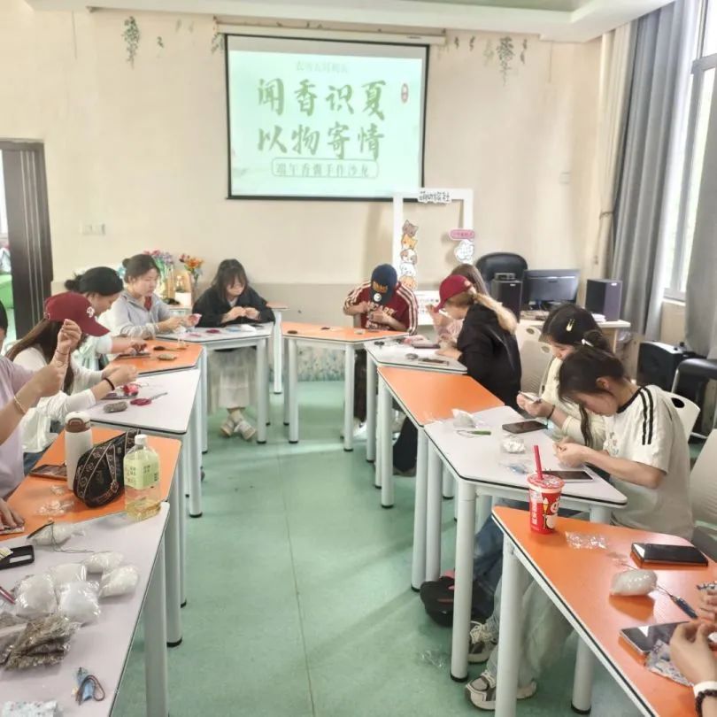 活动当天,现场氛围热烈,参与者热情高涨。在香囊编制环节,学长详细讲解了香囊的历史文化、制作方法和步骤。从裁剪布料、缝制袋口,到填充香料、装饰流苏,每一个步骤都进行了细致示范。参与者们认真聆听,积极动手实践,相互交流学习,不一会儿,形态各异、香气四溢的香囊便在大家手中诞生。