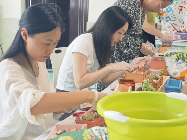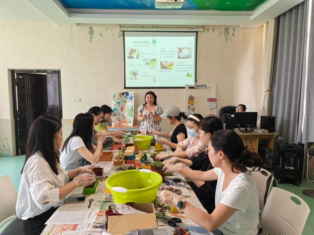 老师们静静地给多肉脱土、修根、培土、装饰,专注地为每一株多肉构建新家园。两小时的时光仿佛静止了,群消息的闪烁、待办事项的催促都消失了,只剩下掌心萌动的生命和完全的当下。