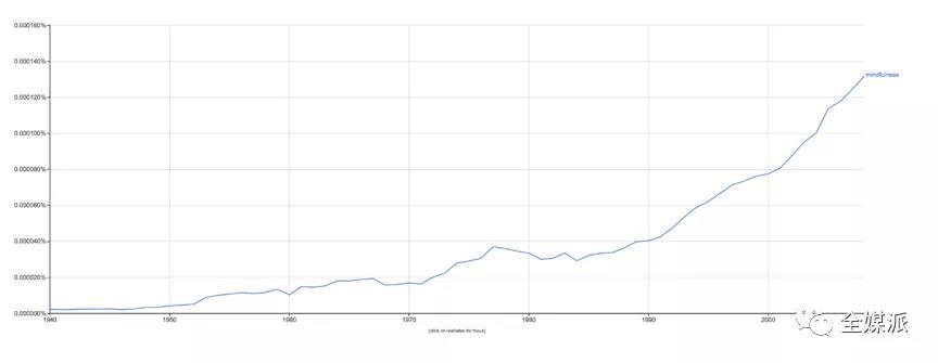 从1940年到2018年,正念的受欢迎程度急速上升(数据来自谷歌)
