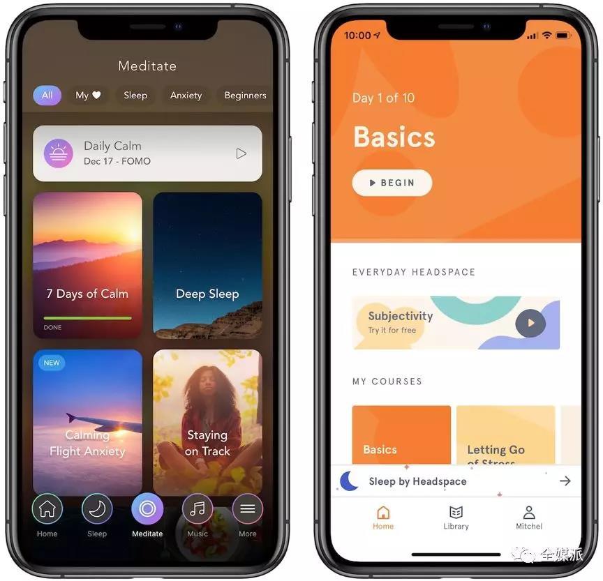 Calm(左)和 Headspace(右)