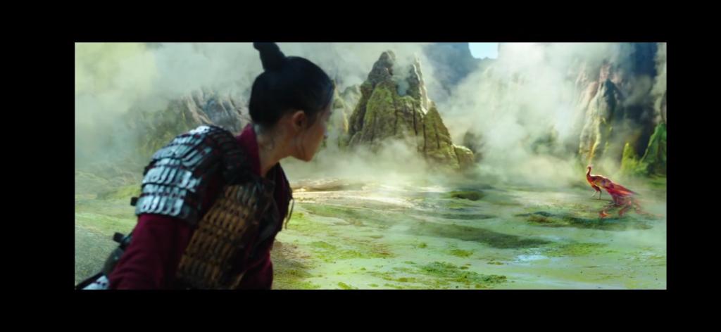 这时影片镜头中有一只凤凰经过,此刻的木兰耳边也许想起来父亲对自己说过的话:“坐落在我们神殿的入口有一只凤凰,有人说凤凰被火焰吞噬,然后会再次出现,我想她能挺过折断的翅膀……”