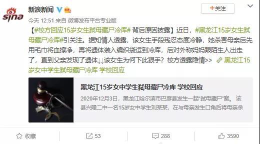就在前几天,又有类似案件发生,黑龙江一名15岁女生和母亲争吵后,将母亲杀害: