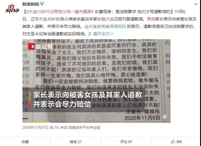 更令人心寒的是,他的父母还一直维护着他,就连道歉,也拖了一整年。
