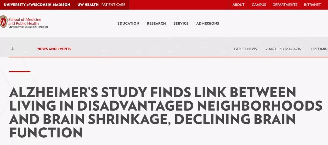 “在世界范围内,痴呆症是造成很多疾病的主要原因,也是一个毁灭性的诊断,”研究作者Amy J. H. Kind医学博士说,她来自威斯康辛大学麦迪逊分校的医学和公共卫生学院(University of Wisconsin School of Medicine and Public Health),“目前还没有治愈这种疾病的治疗方法,所以识别可能改变的风险因素很重要。有令人信服的证据表明,人类生活的社会、经济、文化和物质条件可能影响健康。我们想确定这些社区环境是否会增加与阿尔茨海默病和痴呆症早期阶段相关的神经退化和认知能力下降的风险。”