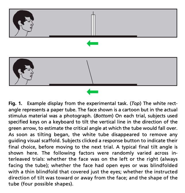 研究者们的实验开展基于一个假设,当物体被盯着时,人们会认为在物体上存在“力”的作用,也就是盯着物体的这道“目光”。