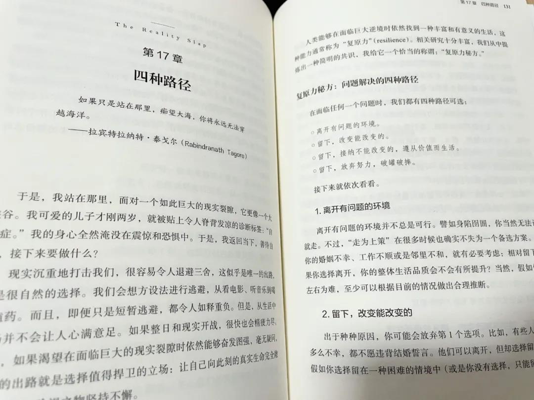 对作者而言,儿子被诊断为自闭症,如果走第一条路,就意味着要遗弃亲生骨肉,这是绝对不可能的;第四条路虽然可以直接放弃不再努力,但对孩子而言是没有任何意义的,只会让病情愈演愈烈。