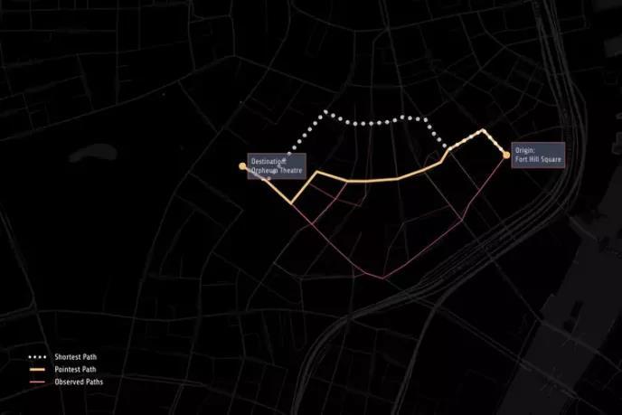 “我们没有计算最短距离,我们发现最有效的预测模型不是去寻找最短路径,而是要最小化角位移,尽可能地直接指向目的地,即便偏离角度稍大的路线实际上更快捷。” 研究的通讯作者保罗·桑蒂是可感城市实验室和意大利国家研究委员会的首席研究科学家,他表示:“我们建议称之为最具指向性路径。”