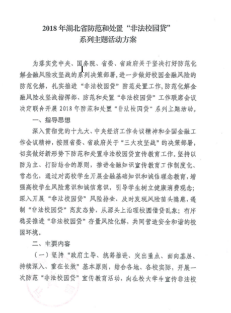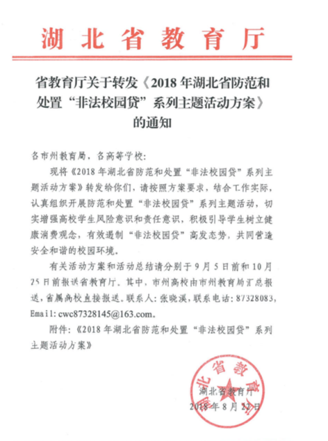 省教育厅关于转发《2018年湖北省防范和处置“非法校园贷”系列主题活动方案》的通知
