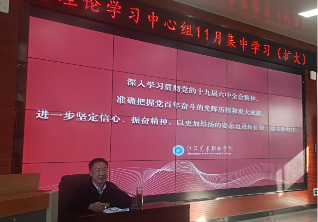 陈俊平就贯彻落实党的十九届六中全会精神作部署。一是要推进全会精神入脑入心。要深入学习宣传《决议》和习近平总书记重要讲话,切实推进全会精神进课堂、进课程、进教材,要切实增进青年学生的政治认同;二是要积极开展全会精神研究阐释。在深刻理解把握党的百年奋斗的重大成就,深刻理解把握党的百年奋斗的历史经验的基础上,进一步抓好校内宣讲。组织精干力量参与潜江市的基层宣讲;三是要切实把全会精神落实到具体工作中。要把全会精神学习转化为办好实事、开展好党史学习教育的重要精神动力,转化为推动高质量发展的强大动力,转化为立德树人的政治自觉、思想自觉和行动自觉。