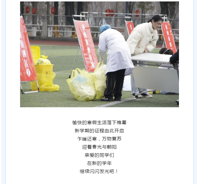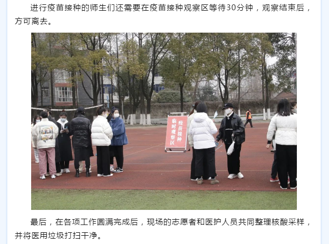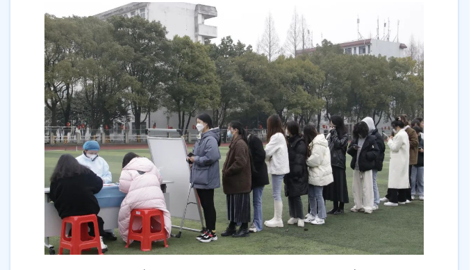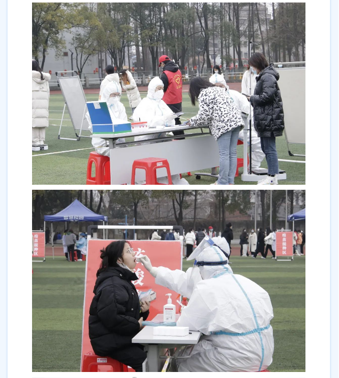 为进一步做好开学疫情防控工作,开学以来,beat365在线体育官网登录入口全体外省返校师生数次在操场进行核酸检测,并为未接种第三针疫苗的老师、同学进行疫苗接种。多个部门协调配合,组织工作井然有序。