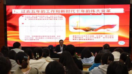 “中国共产党第二十次全国代表大会,是在全党全国各族人民迈上全面建设社会主义现代化国家新征程、向第二个百年奋斗目标进军的关键时刻召开的一次十分重要的大会。”宣讲会上,李飞从大会概况、大会报告的具体内容、大会的意义、结语四个部分,为学员们进行了详细的讲解。