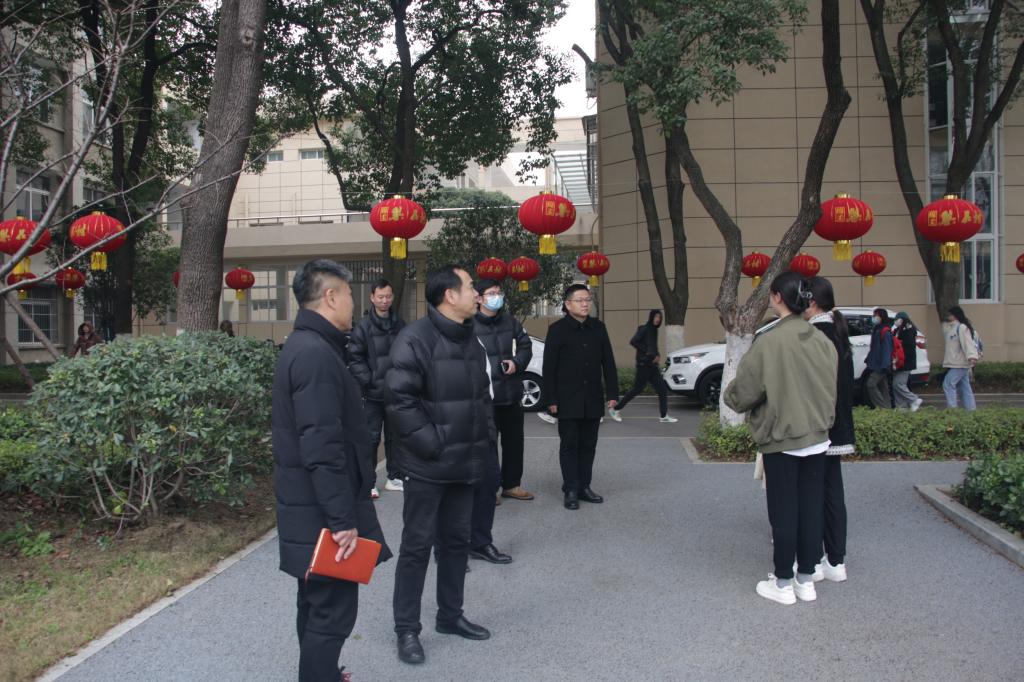 检查组先后来到学校西门、教学区域、教职工住宅、校园道路等场所,对学校的公益宣传、环境卫生、文明创建工作等进行实地检查。程伦嵩认真查看并详细询问关于安全、卫生、设施等情况,对检查中发现的问题和隐患,明确责任部门,提出整改标准,指示有关部门着手整改。