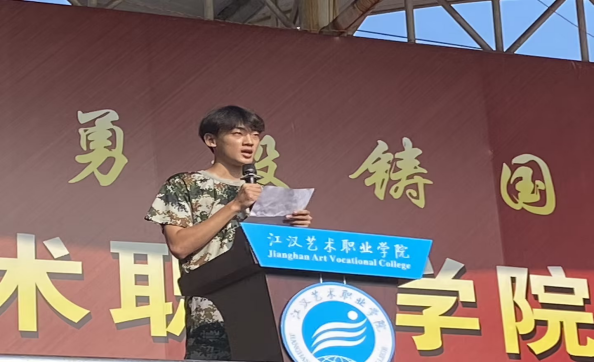 “军训的号角已经吹响,我将以饱满的热情,崭新的面貌迎接大学生活的挑战!”新生徐佳淇表示,将以实际行动响应号召,通过锻炼提升自我,将军训的优良作风带到学习、生活中去。学生代表田时雨号召全体新生严格遵守训练纪律,一切行动听指挥,认真完成各项训练,积极主动锤炼意志,锻造团队合作能力,争取优异成绩,为校争光!