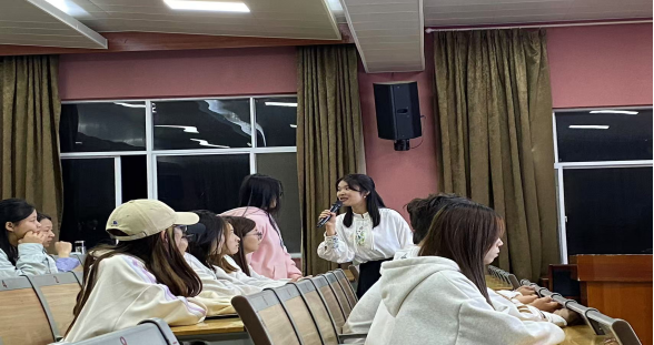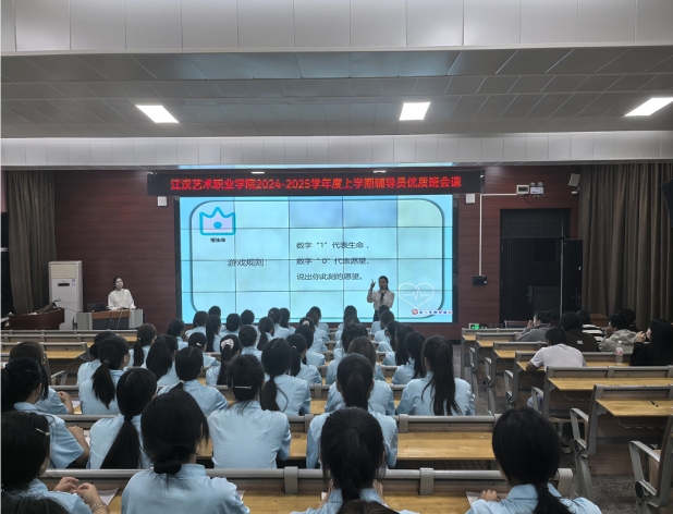 优质班会课竞赛现场,每个团队每位辅导员以饱满的热情和充分的准备展现了自己的特色,或以音乐导之,或以视频辅之,或以表演助之,趣味十足,现场气氛热烈。
