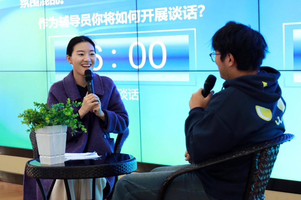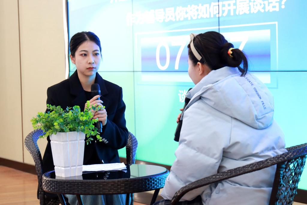 “谈心谈话”环节,主要考察辅导员对学生特征、学生成长成才规律的了解把握程度,对学生的教育引导能力、解决理论困惑和实际问题的能力等。参赛选手提前十分钟抽题,模拟真实场景,与提问学生开展谈心谈话。谈话结束后,选手需结合谈话情况进行简短总结,分析存在问题与改进措施,并回答评委提出的问题。