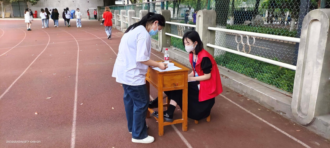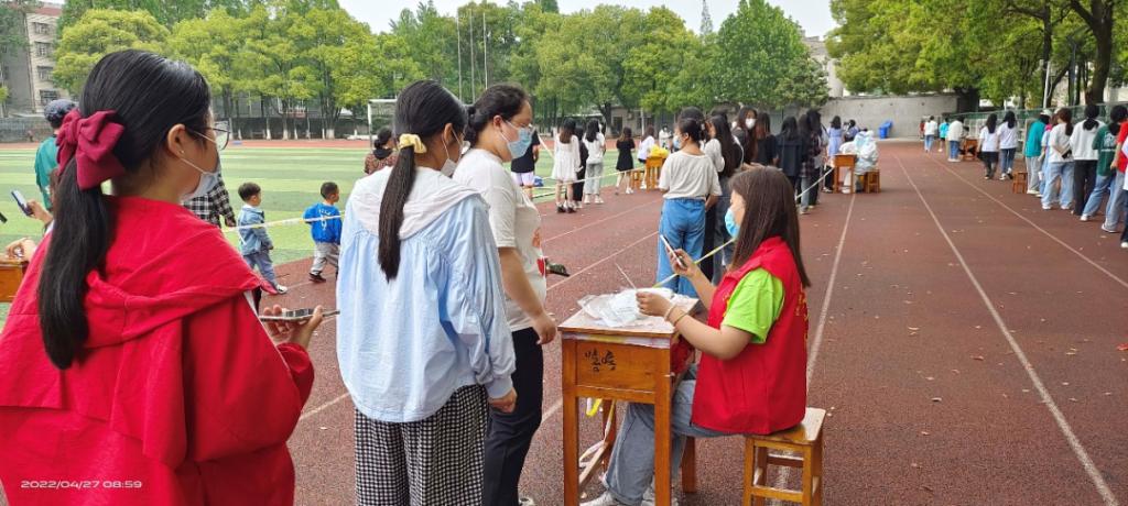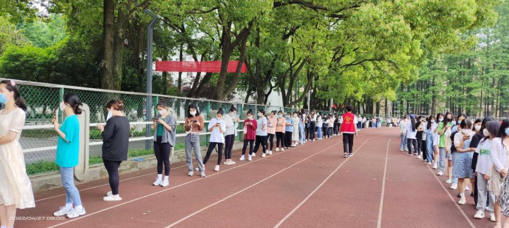 为了进一步做好校园新冠肺炎疫情防控工作,切实打赢新冠肺炎疫情防控战疫,提高疫情防控能力,音乐学院成立了防疫青年突击队于2022年4月27日在操场配合疾控中心组织核酸检测。