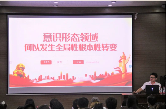 设计学院于2022年6月7日晚在八号报告厅举行主题为“意识开态领域何以发生全局性根本性转变”的专题学习讲座。特邀主讲人为党政办副主任周军老师。