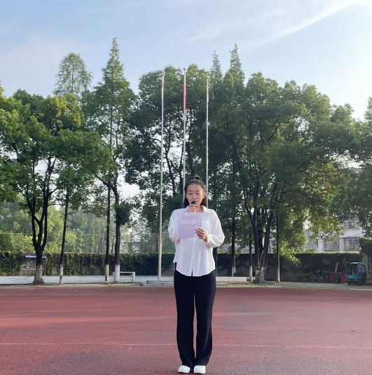管理学院20小教16班的陈佳雯同学作为学生代表在国旗下讲话。陈佳雯以自己两年的学习经验告诉同学们要把握好在校时光,充分利用时间去学习,去开拓自己,并向同学们分享了她之后的实习计划,鼓励大家不断提升自己的专业素养,不负理想,圆满完成自己的任务。
