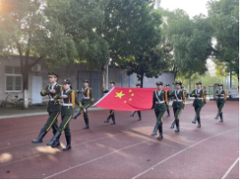 上午七点整,升旗仪式正式开始,护旗手们踩着铿锵有力的号令声,以昂扬向上的姿态,迈着矫健的步伐护送五星红旗走向升旗台,踏响芬芳校园。擎旗手振臂一挥,伴着激昂的国歌声,五星红旗冉冉升起,随风飘扬。